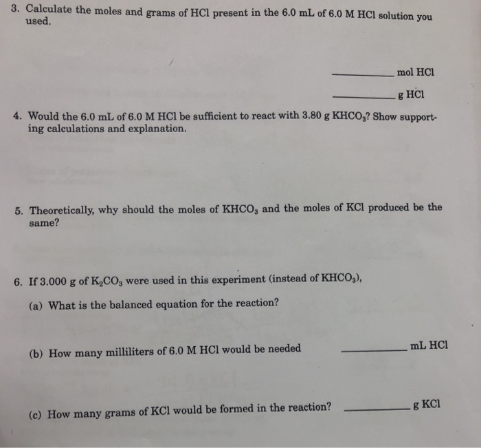 Solved 3 Calculate The Moles And Grams Of Hcl Present In Chegg Com